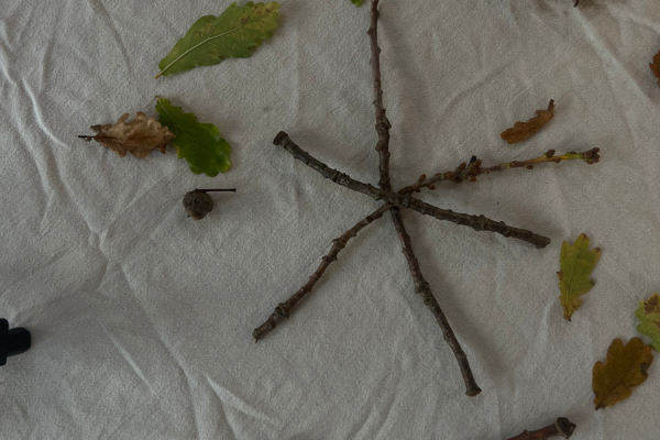 - Position the twigs together in a star shape, crossing over in the middle.