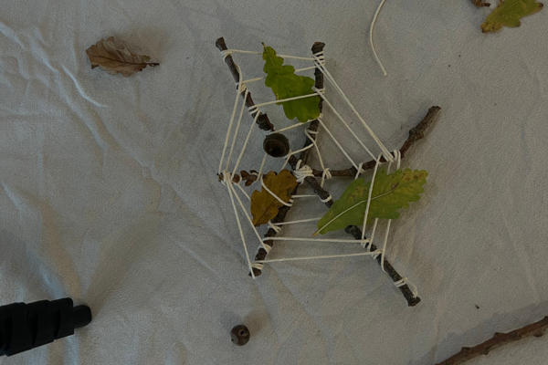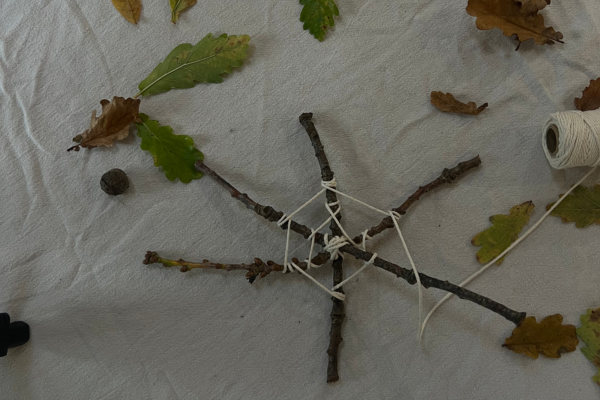 - Using the string, secure the three twigs together with a knot in the centre.