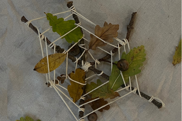 - Add nature items such as leaves and acorns into the web.